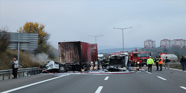 Otoyolun Ankara istikameti Ağaççılar mevkisinde sürücüsünün ismi öğrenilemeyen 34 JZ 2494 plakalı tır, aynı istikamette seyreden Ali P. yönetimindeki tomruk yüklü 81 ABJ 581 plakalı tıra arkadan çarptı.