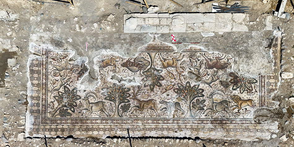 Elazığ’ın kent merkezine 14 kilometre uzaklıktaki Salkaya Köyü’nde 2023 yılında bir çiftçi tarafından tarlasına vişne ağacı ekimi sırasında renkli ve parlak taşlar fark etmesi üzerine keşfedilen ve kazı çalışmaları başlatılan taban mozaiği, bölgenin tarihine dair önemli bir bulgu olarak dikkat çekiyor. Yaklaşık 84 metrekarelik alana serili olan taban mozaiğinin tarihinin ise Erken Bizans dönemine ait olduğu belirtiliyor. Elazığ’da şimdiye kadar benzeri bulunmayan mozaik, bir ilk olma özelliği taşıyor. Mozaiğin üzerinde kurt, domuz, dağ keçisi, geyik, sülün, Anadolu Leoparı gibi hayvan figürlerinin yanı sıra bölgeye ait çeşitli bitkiler de dikkat çekiyor.