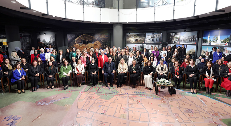 Erdoğan, 20 yıldır ülkede kadınların tamamını, ailelerinin temel direkleri, çocuklarının ebedi öğretmenleri olmalarının yanı sıra hayatın her alanında hak ettikleri yere çıkarmak isterken ilhamı bu ortamlardan aldıklarını vurguladı.