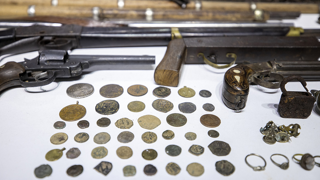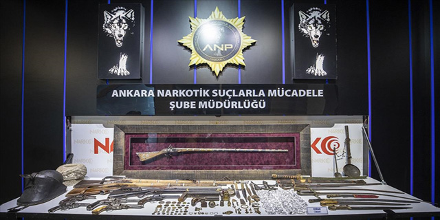 Narkotik Suçlarla Mücadele Şube Müdürlüğünde sergilenen tarihi eserler arasında 5 tüfek, 43 çeşitli tarih ve ebatlarda sikke, 5 mühür, 23 obje, kilit olduğu değerlendirilen obje, tarihi çakmak, 4 kılıfsız kılıç, 2 kılıflı kılıç, 8 hançer, terazi ağırlığı, 2 el terazisi, 7 eski tip toplu olarak tabi edilen tabanca, körük, sürmelik obje, 2 barut aleti, kurşun dökme kalıbı, deri saplı kapaklı kap, bakır yuvarlak şişe, nahit taş yer alıyor.