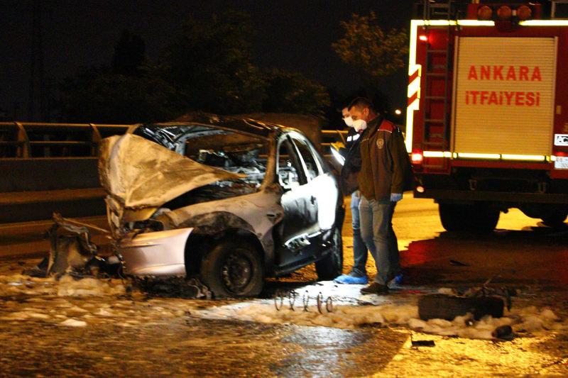 Kaza, saat 05.00 sıralarında Ankara-Ayaş yolu Sincan Organize Sanayi Bölgesi'ndeki demiryolu üst geçidinde meydana geldi. Etimesgut yönüne giden ve sürücüsünün kimliği henüz belirlenemeyen 06 FT 662 plakalı otomobil, TCDD üst geçidinin ayağına çarptı. Çarpmanın etkisiyle savrulan otomobil yanmaya başladı.