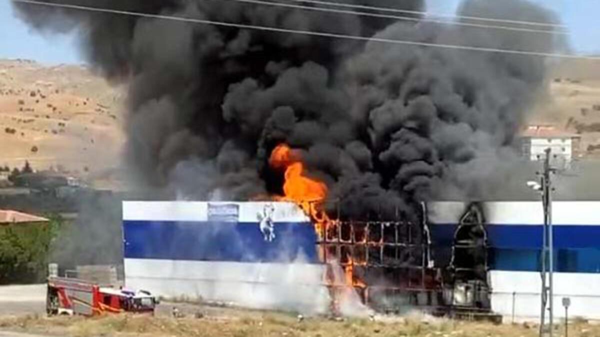 Ankara'nın Yenimahalle ilçesindeki ayran fabrikasında, henüz belirlenemeyen nedenle yangın çıktı. Alevler, itfaiye ekiplerince yarım saatte kontrol altına alındı.