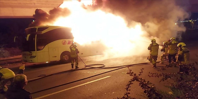 Edinilen bilgiye göre, bir otobüs firmasının İstanbul-Erzincan seferini yapan 35 AAV 984 plakalı yolcu otobüsü, Anadolu Bulvarı GİMAT kavşağında seyir halindeyken henüz belirlenemeyen bir sebeple alev aldı.