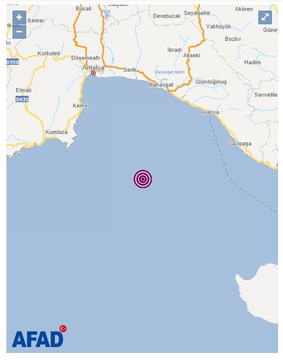 Antalya'da deprem!Afet ve Acil Durum Yönetimi Başkanlığı (AFAD), Antalya'nın Kumluca açıklarında 4.5 büyüklüğünde bir depremin meydana geldiğini açıkladı.07 Eylül 2021, Salı - 14:26 AFAD, Antalya'nın Kumluca açıklarında 4.5 büyüklüğünde bir depremin meydana geldiğini açıkladı.Deprem, 26.02 km derinlikte gerçekleşti. Zeki Doruk'un da aralarında olduğu 27 şüpheli hakkında iddianameKumluca'ya 75.70 km mesafede gerçekleşen deprem, Alanya, Kemer ve Gazipaşa'da da hissedildi.Etiketler: Antalya AFAD deprem