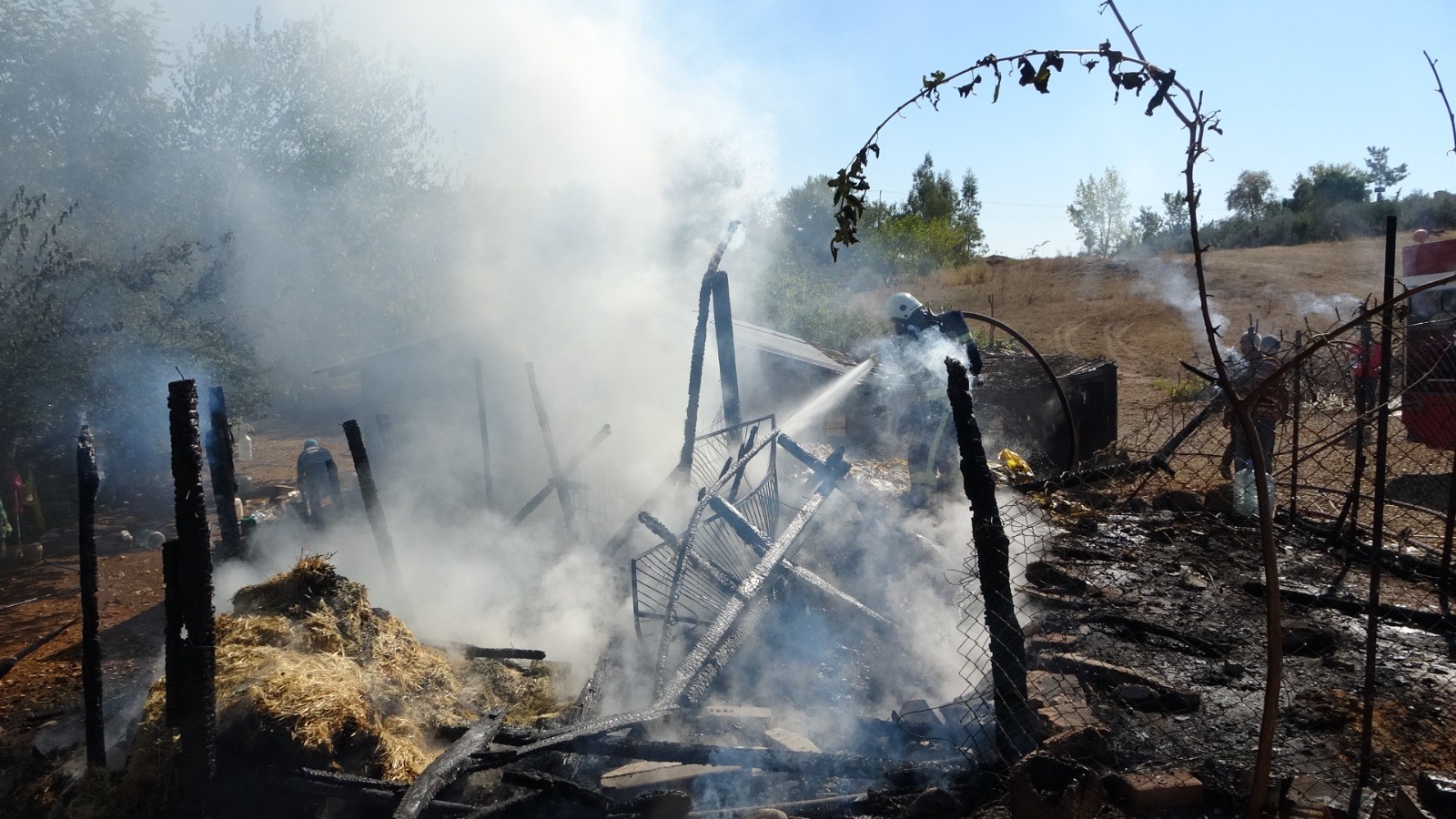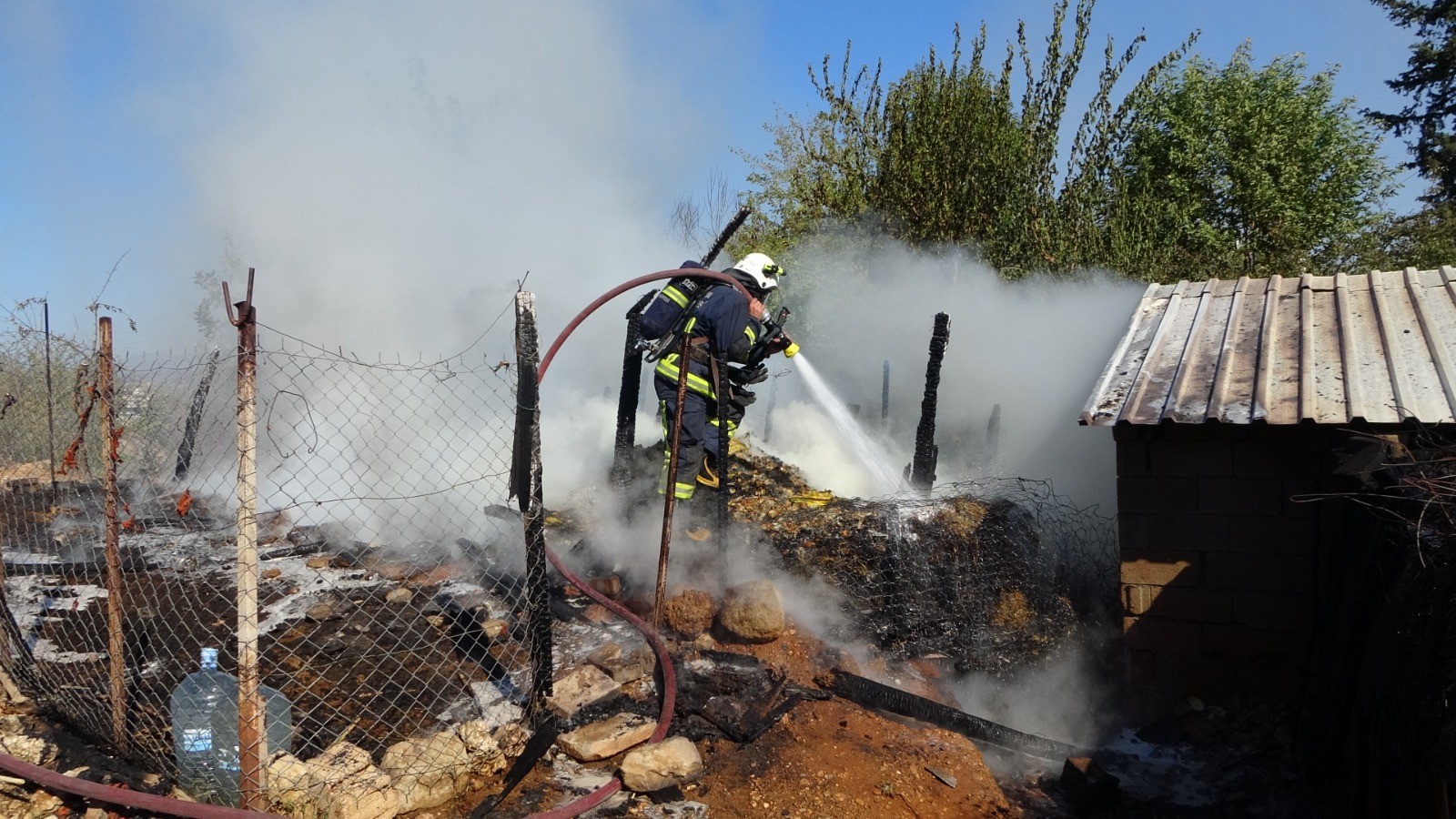Yangın, Salkımevler Mahallesi Kütüklü Kümeevler mevkiinde Mehmet Çetin'e ait içerisinde koyun ve kışlık yemlerin bulunduğu ağılda çıktı.