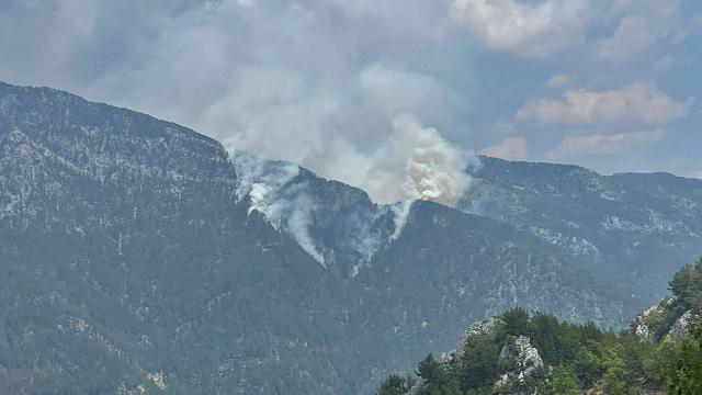 Yangının sarp ve dağlık alanda çıkması ekiplerin karadan müdahalesini zorlaştırdı.