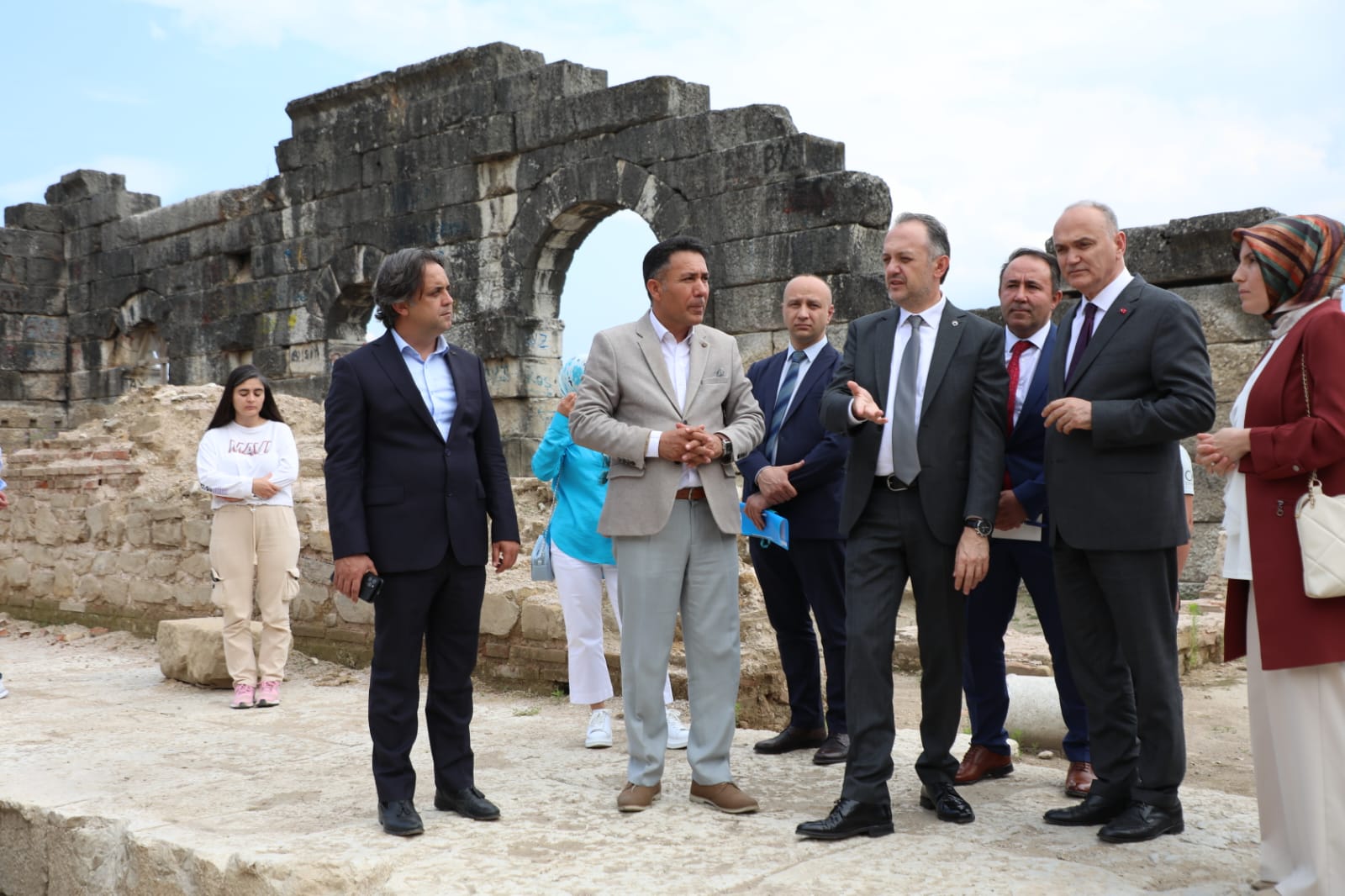 “Kültür Bakanlığı olarak elimizden geleni yaparak burayı en kısa sürede ziyaretçilerimizin beğenisine sunmak için belediye başkanımız ile birlikte motive olduk” diyen Yazgı, “ Hem kazı hem de restorasyon çalışması yaparak bu antik tiyatroyu gün yüzüne çıkartacağız. Böyle bir antik tiyatro her şehirde bulunabilecek bir tiyatro değil. Bu ölçekte bir antik tiyatro bir elin parmaklarından fazla değildir. Hem şehir merkezinde olup hem de bu kadar görünür halde ve restorasyonu yapıldığında kültür sanat merkezi olabilecek ender yerlerden bir tanesidir” ifadelerinde bulundu.