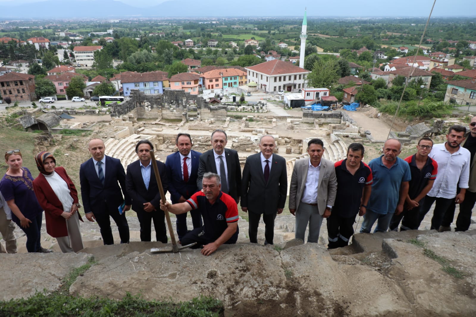 Kültür Varlıkları ve Müzeler Genel Müdürü Gökhan Yazgı, Belediye Başkanı Dr. Faruk Özlü’nün misafiri olarak geldiği Düzce’de Antik Tiyatro'yu yakından inceleme imkanı buldu. Başkan Özlü ile birlikte tiyatronun tüm bölümlerini gezen Yazgı, Prusias ad Hypium Antik Tiyatrosu'nu ‘muhteşem’ olarak nitelendirdi.