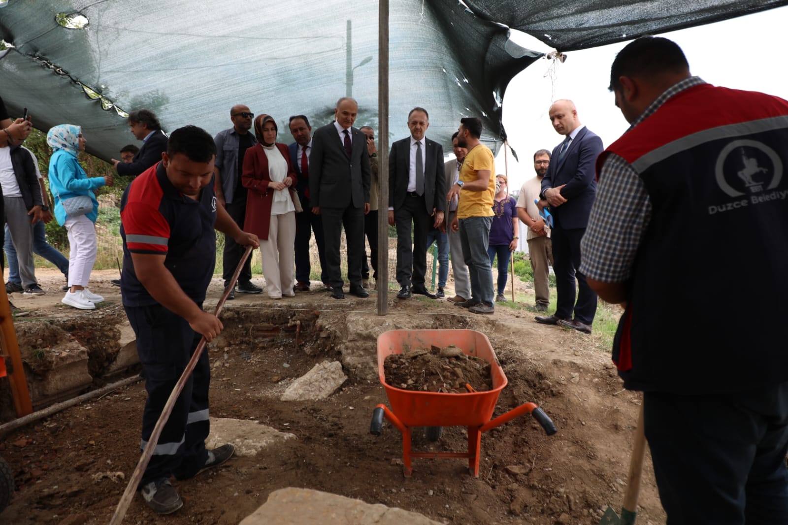 Düzce Belediye Başkanı Dr. Faruk Özlü, ilgili birim müdürleri ile birlikte tiyatroda yapılan çalışmaları Yazgı’ya aktarırken kazı çalışanlarıyla da sohbet etti. Antik Tiyatroda yapılacak ilk konsere de kazı çalışmalarını yapanların ön sırada yer alacakları kaydedildi.