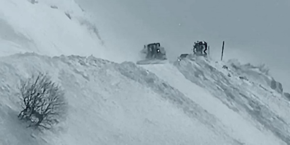 Alanda kar temizleme ve yol genişletme çalışması yapıldığı sırada bu kez bir kepçenin yan kısmına çığ düştü.