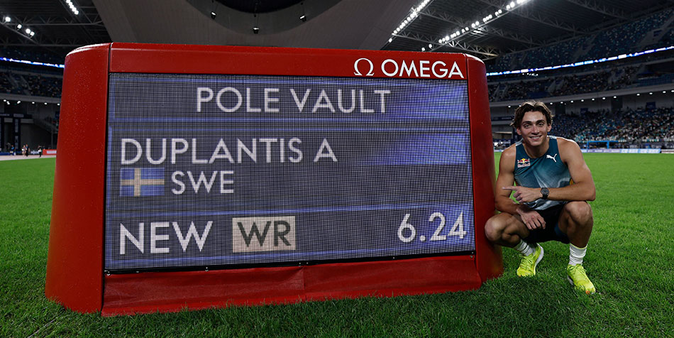İsviçreli Olimpiyat şampiyonu Armand Duplatis Çin'in Xiamen kentinde düzenlenen Elmas Lig ilk etabında 6,24 metrelik atlayışıyla dünya rekoru kırdı.
