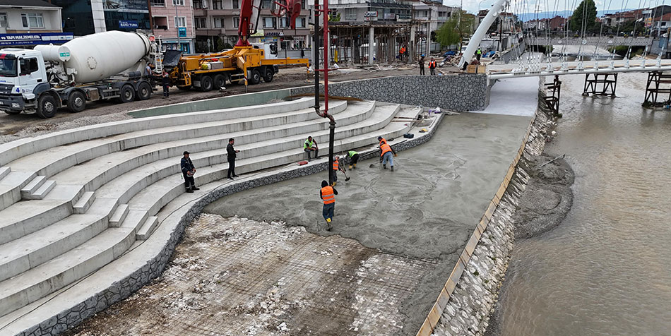3 etaptan oluşan projenin Küçüksü Köprüsü ile Şaguç Köprüsü arasında kalan 430 metrelik birinci etabında yürütülen çalışmalar kapsamında, amfi basamaklar ile asma köprülerin tabliye ve kemer montajları tamamlanırken, restoran inşaatı ile eş zamanlı olarak dere içi ve kenarında yaya yürüyüş yollarının yapımına da başlandı. Yeşil alan düzenlemesinin de yapılacağı çalışmalar kapsamında yol güzergahları da yeniden düzenleniyor. Rıhtım Sokak, Meydan Sokak’ın girişinden itibaren trafiğe kapalı hale getirilirken, araç trafiğinin akacağı Mimar Sinan Caddesi’nde ise asfalt çalışmaları yapılıyor.