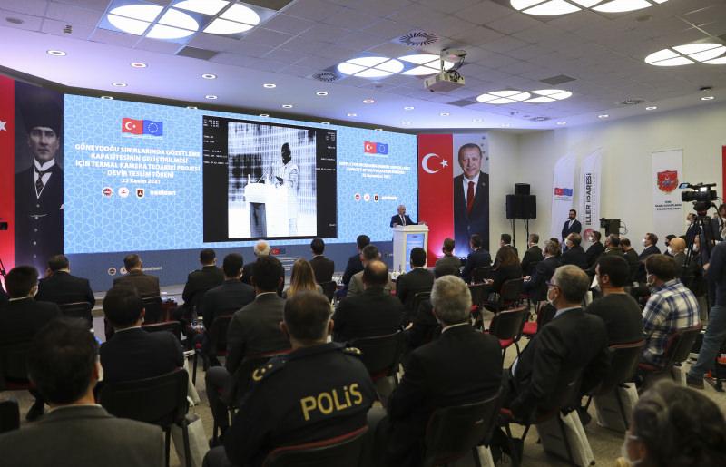 Sınırların korunmasına yönelik fiziki ve teknolojik sistemlerle hudut birliklerinin desteklendiğine dikkati çeken Ersoy, "Her ne kadar hem yabancı terörist savaşçılara karşı savaşımızda hem de düzensiz göçe karşı verdiğimiz mücadelede ve katlandığımız maliyetlerde Avrupa Birliği bizi yalnız bırakmış olsa da bu projeyle verdikleri desteğe müteşekkirim." değerlendirmesinde bulundu.