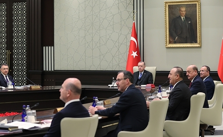 Cumhurbaşkanı Recep Tayyip Erdoğan başkanlığında toplanan Kabine Toplantısı sona erdi. Kritik toplantıda ekonomiden dış politikaya kadar çok sayıda önemli konu ele alındı. Erdoğan toplantı sonrası kameralar karşısında ekonomiye yönelik önemli açıklamalarda da bulundu.