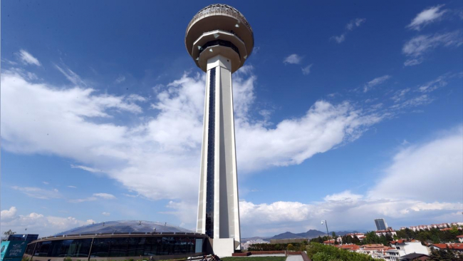 Başkentin simgelerinden Atakule'nin, Ankara'yı kuşbakışı gören 125 metre uzunluğundaki kule kısmı yeniden hizmet vermeye başladı.