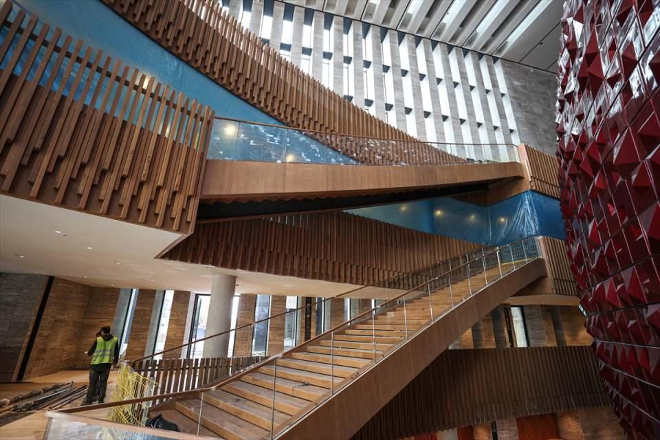 AKM'nin iç mekanlarındaki ince iş, asma tavan, cam bölme, cam doğrama, yer kaplama işleri tamamlandı. 5 bloktan oluşan ve 30 bin metrekare arsa üzerine kurulu, 95 bin metrekare kapalı alana sahip AKM'nin cephesi ve iç mekanlarındaki doğal taş kaplamalarının tamamı bitirildi.