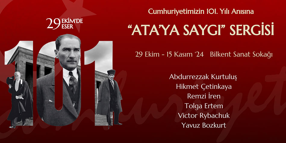 Bilkent Center, 29 Ekim Cumhuriyet Bayramının 101. Yılını düzenleyeceği organizasyonlarla coşkuyla kutlayacak. 29 Ekim- 15 Kasım tarihleri arasında gerçekleşecek olan “Ata’ya Saygı" resim sergisi hem duygu dolu anlar yaşatırken hem de Gazi Mustafa Kemal Atatürk’ün çok özel resimlerini de Başkentlilerle buluşturacak. Sergide, Rahmi Çöğendez’in küratörlüğünde Abdulrezzak Kurtuluş, Hikmet Çetinkaya, Remzi İren, Tolga Ertem, Victor Rybachuk ve Yavuz Bozkurt’un toplam 29 adet Atatürk resmi alacak. Ayrıca ziyaretçiler Atatürk için söylenen ve dünya basınında yer almış sözleri de inceleyebilecek.