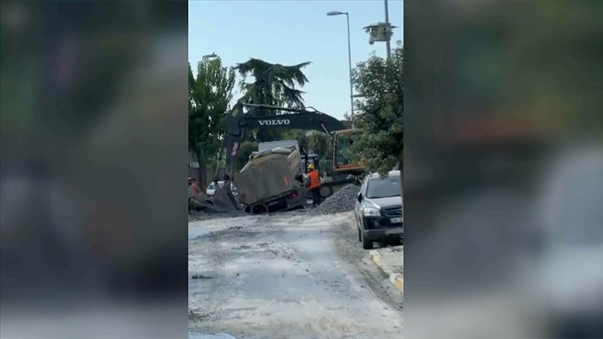 Ekiplerin çalışmasının ardından çukura kayan kamyon çıkarıldı ve patlayan su borusu onarıldı.