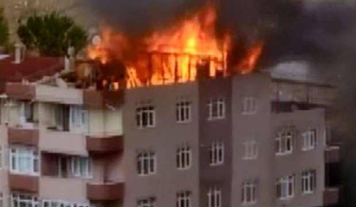 Yangın 4 katlı binanın çatısını kısa sürede kapladı. İhbar üzerine bölgeye çok sayıda itfaiye ekibi sevk edildi.