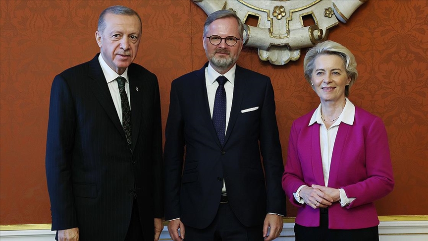 Ursula Von der Leyen ile AB dönem başkanı Çekya'nın Başbakanı Petr Fiala, Cumhurbaşkanı Erdoğan ile Avrupa Siyasi Topluluğu toplantısı vesilesiyle Prag'da üçlü görüşme yaptı.