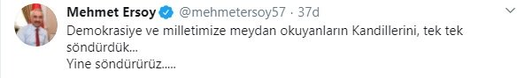 İçişleri Bakan Yardımcısı Mehmet Ersoy'un tepkisi ise şu şekilde oldu: "Demokrasiye ve milletimize meydan okuyanların Kandillerini, tek tek söndürdük... Yine söndürürüz..."