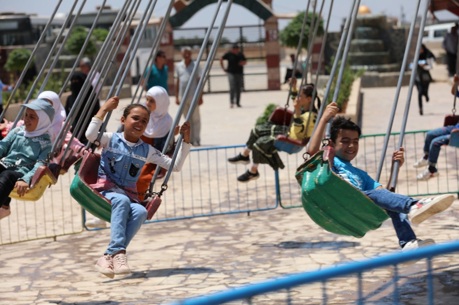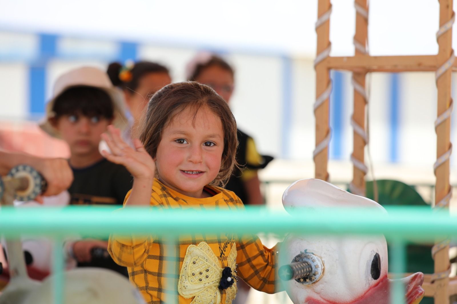 2021-2022 eğitim yılının son gününde karne alan Azez’deki çocuklara eğlence düzenlendi. Yaşları 1-14 arasında değişen 140 çocuk ve annesi için gerçekleştirilen etkinlikte, Yetim Vakfı’nın işletiminde olan Tilalin Köyü’ndeki çocuklar, karne sevincini lunaparkta yaşadı. Çocuklar dönme dolaba, salıncağa, çarpışan arabaya ve gondola binerek günün tadını çıkardılar. Halat çekme, dev kaydıraktan kayma ve çuval yarışları gibi oyunlarla çocukların eğlencesi devam etti.