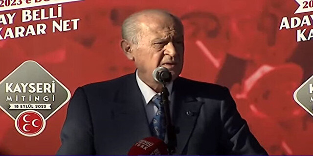 Bahçeli, "Anket şirketlerini para ile yemleyip MHP ile ilgili kara kampanya düzeneği kuruyorlardı. Yüzleri kızarmadan yıkım planı yapıyorlardı. İşte görsünler buradaki heybeti, haşmeti...-2023 müteakip yıllarda onları baştan ayağı giydirmeyi bilirsiniz. MHP’ye kefen giydirmeye çalışıyorlardı, sözde aydınları yemleyip düzenek kuruyorlardı." dedi.