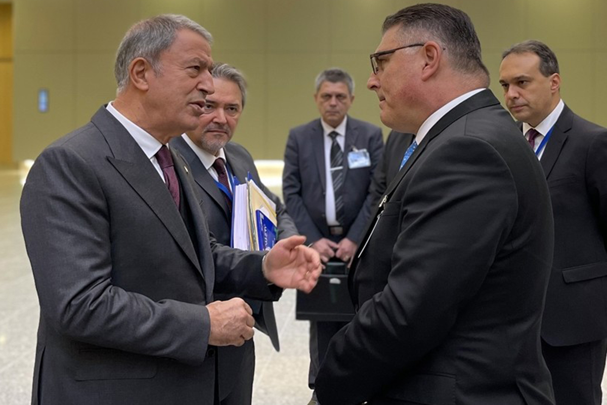 Milli Savunma Bakanı Hulusi Akar, Belçika'nın başkenti Brüksel'de temaslarını sürdürüyor. NATO Karargahı'nda NATO Savunma Bakanları Toplantısı'nın ikinci gün oturumlarına katılan Bakan Akar, Bulgaristan Savunma Bakanı Georgi Panayotov ile kısa bir görüşme gerçekleştirdi.