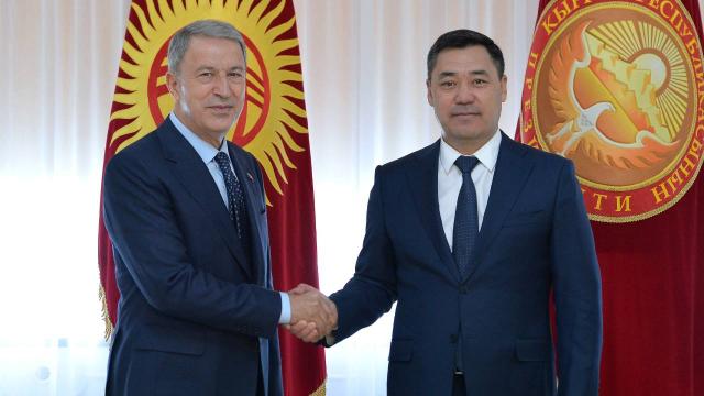 Milli Savunma Bakanı Hulusi Akar, Kırgızistan Savunma Bakanı Tuğgeneral Taalaybek Omuraliev'in resmi davetlisi olarak geldiği başkent Bişkek'teki temaslarını sürdürüyor. Bakan Akar, bugünkü temasları kapsamında Kırgızistan Cumhurbaşkanı Sadır Caparov tarafından Cumhurbaşkanlığı'nda kabul edildi.