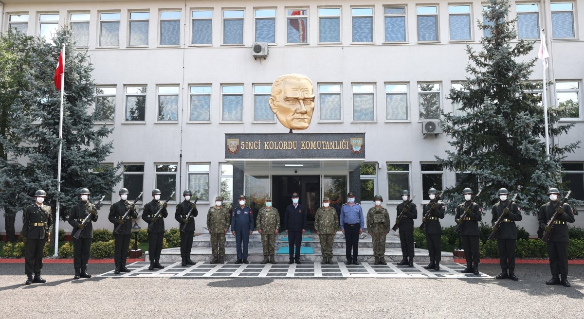Beraberindeki TSK Komuta kademesi ile inceleme ve denetlemelerini sürdüren Milli Savunma Bakanı Hulusi Akar ve komutanlar, 5'inci Kolordu Komutanlığını ziyaret ederek faaliyetlere ilişkin bilgi aldı ve talimatlar verdi.