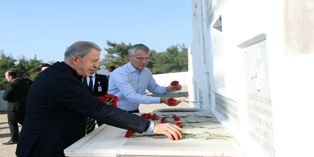 Buradan Seddülbahir'e geçen Bakan Akar ve Stoltenberg önce Fransız Anıtı, ardından İngiliz Milletler Topluluğu Anıtı'nı (Cape Helles) ziyaret ederek karanfil bıraktı.
