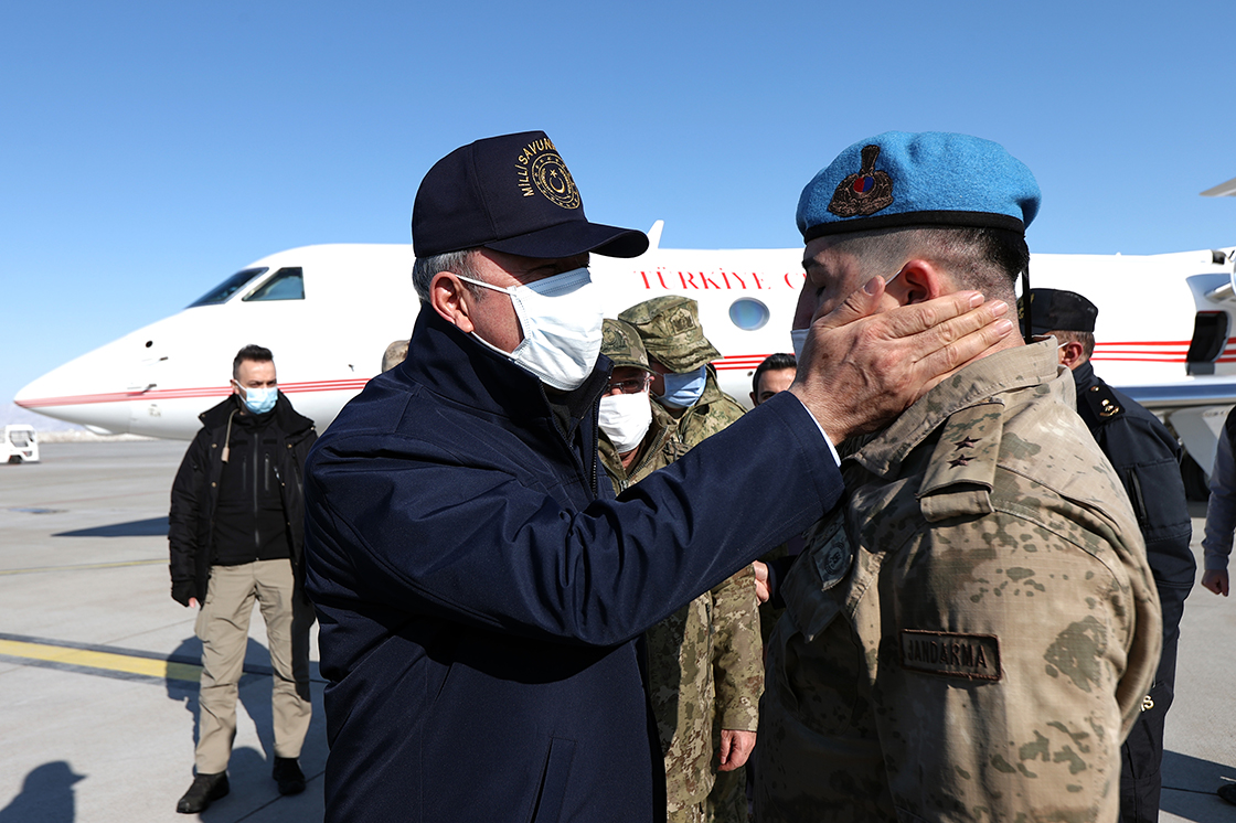 23. Piyade Tümen Komutanlığına da geçen Bakan Akar, beraberindeki TSK komuta kademesi ile sınır hattı ve ötesindeki birliklerin komutanlarıyla toplantı yapıyor.