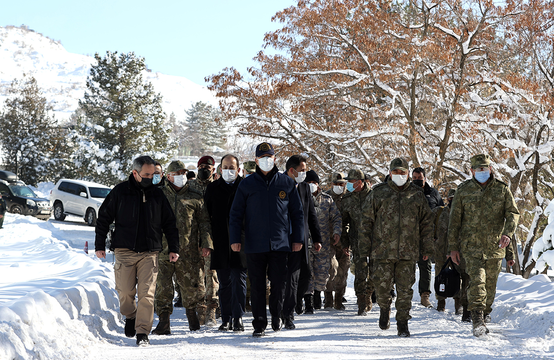 Milli Savunma Bakanı Hulusi Akar, beraberindeki TSK Komuta Kademesi ile Irak sınırındaki birliklerde inceleme ve denetlemelerde bulunuyor.