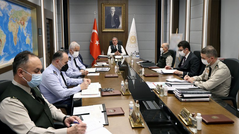 Milli Savunma Bakanı Hulusi Akar başkanlığında Genelkurmay Başkanı Orgeneral Yaşar Güler, Kara Kuvvetleri Komutanı Orgeneral Musa Avsever, Deniz Kuvvetleri Komutanı Oramiral Adnan Özbal, Hava Kuvvetleri Komutanı Orgeneral Hasan Küçükakyüz, Bakan Yardımcısı Yunus Emre Karaosmanoğlu ve birlik komutanlarının katılımıyla video telekonferans toplantısı düzenlendi.