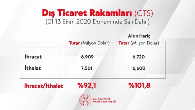 Gelen son dakika bilgisine göre Hazine ve Maliye Bakanı Berat Albayrak, ekonomiye ilişkin önemli açıklamalarda bulundu. "YEP" hedefleri doğrultusunda Türkiye'nin sanayi ve üretimde; ekonominin her alanında yeni bir döneme girdiğini vurgulayan Albayrak, "Ekim ayında 13 günde ihracatın ithalatı karşılama oranı %92,1'e çıkarken altın hariç bu rakam %101,8. Güçlü bir ekonomi için bu oranları daha da yukarı taşıyacağız." ifadelerini kullandı.