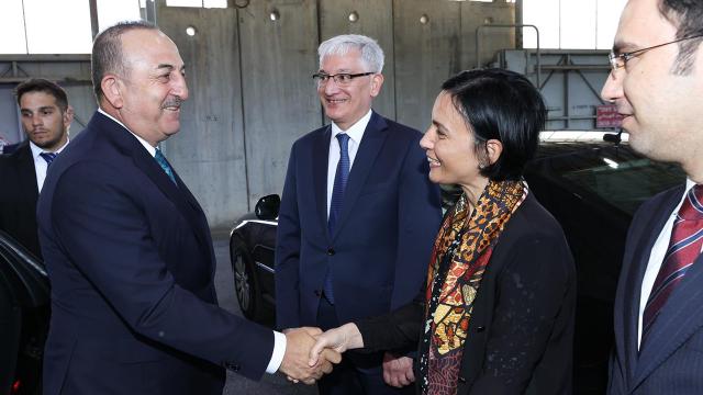 Filistin ziyareti kapsamında Tel Aviv'den Ramallah kentine gelen Çavuşoğlu, Filistin Dışişleri Bakanlığı'na geçti.