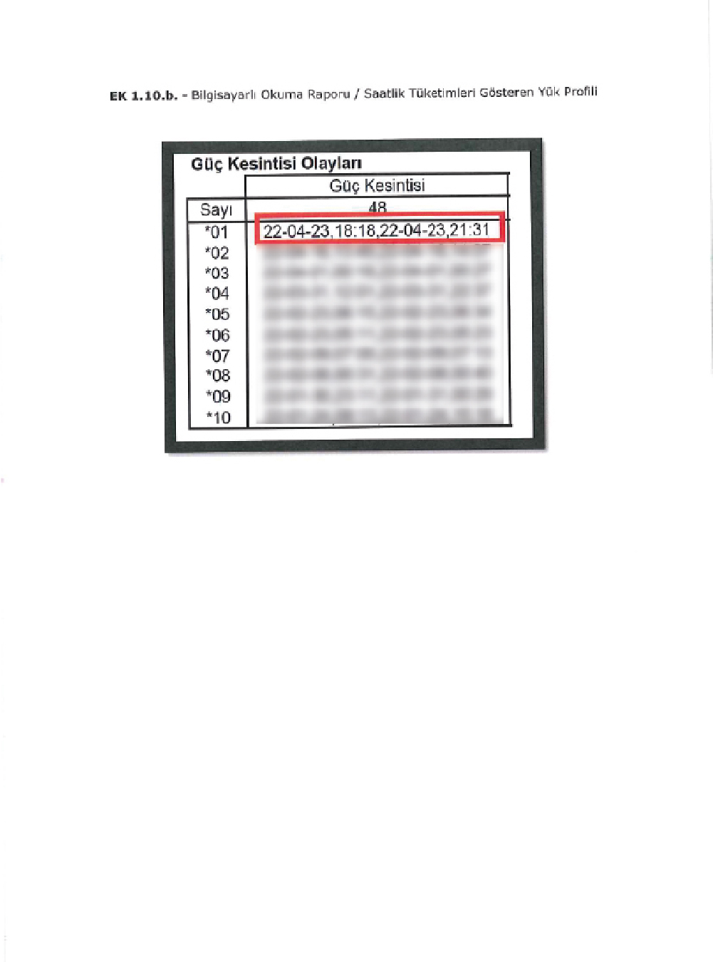 O gün sadece sizin ziyaret saatlerinizi de kapsayan 18.18 ile 21.31 saatleri arasında elektrik tüketimi yoktur.Ziyaretinizin ardından, 21.31’den itibaren elektrik kullanımına devam edilmiştir."