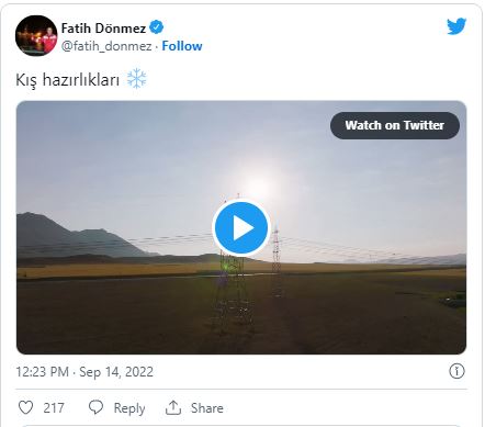 Enerji ve Tabii Kaynaklar Bakanı Fatih Dönmez, sosyal medya hesabında yer verdiği videoda, TEİAŞ ekiplerinin hat bakım çalışmaları ve ikaz küresi montaj çalışmaları yer alıyor.
