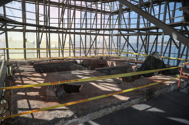 "Çimento, artık günümüzde Türkiye'deki restorasyonlarda sakıncalı malzeme olarak kabul ediliyor. Betonun içinde kullanılan kimyasal içerikli tuzlar bir korozyona sebebiyet veriyor. Yapıdaki özgün malzemenin de zarar görmesine sebebiyet veriyor. Bu yapılar yüzlerce yıl önce tasarlanıp yapılmış yapılar. Yani üzerindeki yük o zamanki malzemeye göre hesaplanmış. Siz beton ve inşaat demiri kullandığınız zaman, yapının yükünü inanılmaz derecede arttırıyor, olması gereken statik yapısından çok uzak hale getiriyorsunuz. Yapıda orta ve uzun vadede çok ciddi hasarlar oluşturuyor. Bu yapının bir özelliği daha var. Bu bina sadece kara üzerine oturtulmuş bir şey değil. Aslında bir ada platform. Yani yapının bir üst statiği var. Bir de platformun altında, denizin altında bir statiği var. Çok da suçlamak istemiyorum. O dönemde şu anki jeotermal ve lazer tarama teknolojisi yoktu. Radarla yaptığınız taramalarda zaten yapının zafiyetlerini bulabiliyorsunuz."