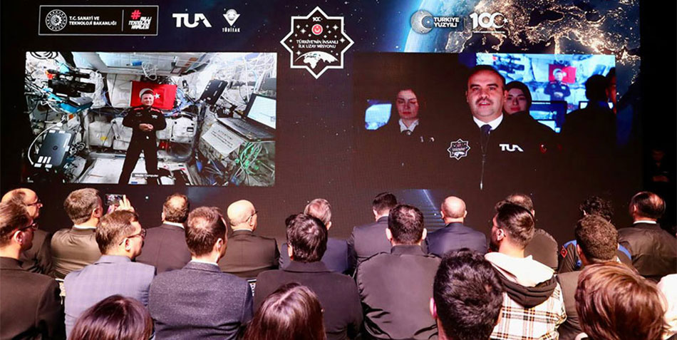 Bakan Kacır: Sizlerle gurur duyuyoruz. Şu an sizinle Uluslararası Uzay İstasyonu’nda iletişim kuruyor olmak milletimiz adına büyük bir mutluluk vesilesi. Uzay çalışmaları bilimsel ve teknolojik ilerlemenin yanında uluslararası iş birliklerinin de öncüsü oluyor. Bu anlayışla, Sayın Cumhurbaşkanımızın liderliğinde sürdürdüğümüz Milli Uzay Programımızın hedeflerine ulaşmada uluslararası iş birliğinin önemine her daim vurgu yapıyoruz. Uluslararası Uzay İstasyonu, uzayda barışçıl amaçlar taşıyan ve iş birliğini önceleyen ve gözeten bir sembol aslında. Günlük çalışmalarınızda da paylaşım ve iş birliği içerisinde olduğunuzu takip ediyoruz.