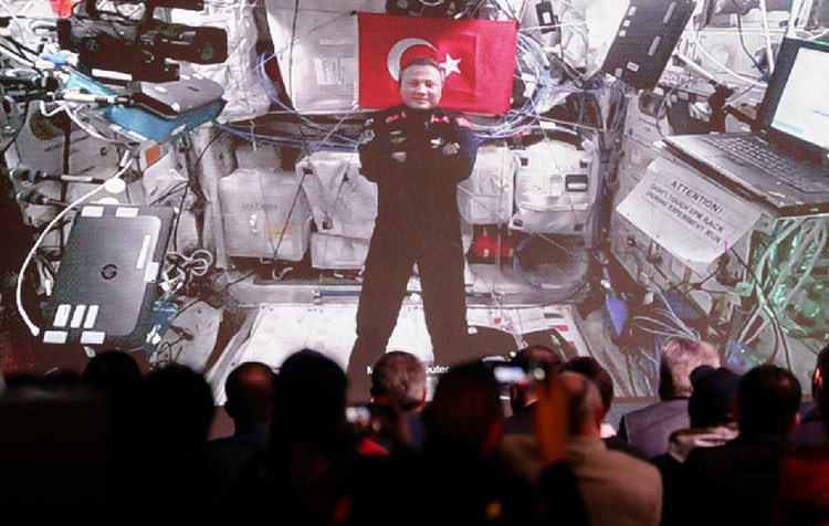 Eminim, farklı ülkelerden astronotların bir arada olduğu çalışma ortamınız sizin için de heyecan verici bir tecrübedir. Bu vesileyle orada bulunan tüm astronotlara, kozmonotlara Türkiye’den selamlarımızı iletmenizi istiyoruz. Ay yıldızlı bayrağımızı bu uluslararası platformda gururla taşıdığınız için sizi bir kez daha milletimiz adına tebrik ediyorum.