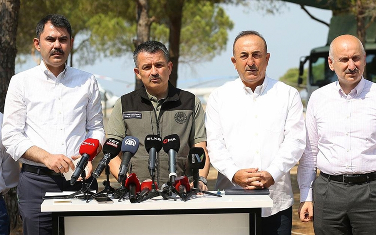 Ulaştırma ve Altyapı Bakanı Adil Karaismailoğlu, Tarım ve Orman Bakanı Bekir Pakdemirli, Çevre ve Şehircilik Bakanı Murat Kurum ve Dışişleri Bakanı Mevlüt Çavuşoğlu Türkiye'nin çeşitli noktalarında etkili olan yangınlar ile ilgili açıklama yaptı. Açıklama öncesi dört bakan yetkililerden brifing aldı.