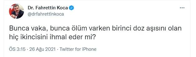 Sağlık Bakanı Fahrettin Koca'nın Twitter hesabından yaptığı açıklama:
