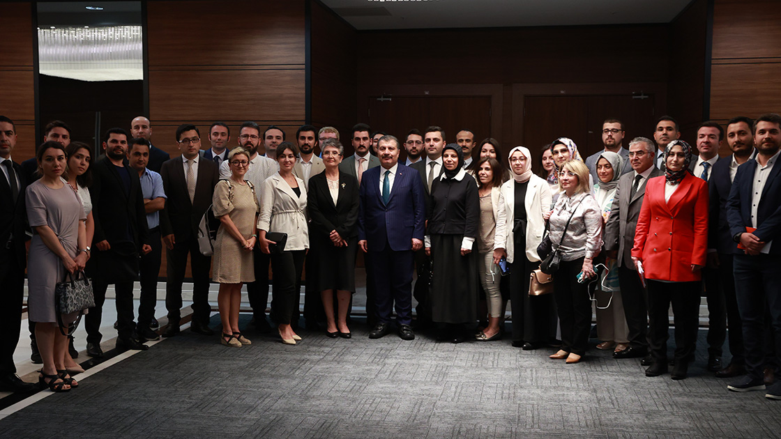 Sağlık Bakanı Fahrettin Koca, Türkiye'nin farklı illerindeki hastanelerde ve sağlık kurumlarında farklı branşlarda görev yapan 58 hekimle bir araya geldi.