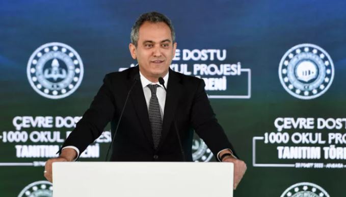Milli Eğitim Bakanı Mahmut Özer, OSTİM İlköğretim Okulu'nda düzenlenen "Çevre Dostu Bin Okul Projesi" tanıtım programında, projeye desteklerinden ötürü Çevre, Şehircilik ve İklim Değişikliği Bakanı Murat Kurum'a teşekkür etti.