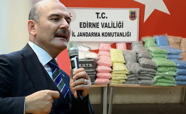 Bakan Soylu "Kökünü Kurutana kadar mücadeleye devam! Edirne İl Jandarma Komutanlığı ekiplerince uzun süreli takip sonucunda ülkeye giriş yapan TIR'da; 35 kg kokain, 2 kg metamfetamin, 460 kg ecstasy, 760 gr reçine esrar, 9 tüp likit esrar ele geçirildi. Kahraman Jandarma'mıza tebrikler" açıklamasında bulundu.