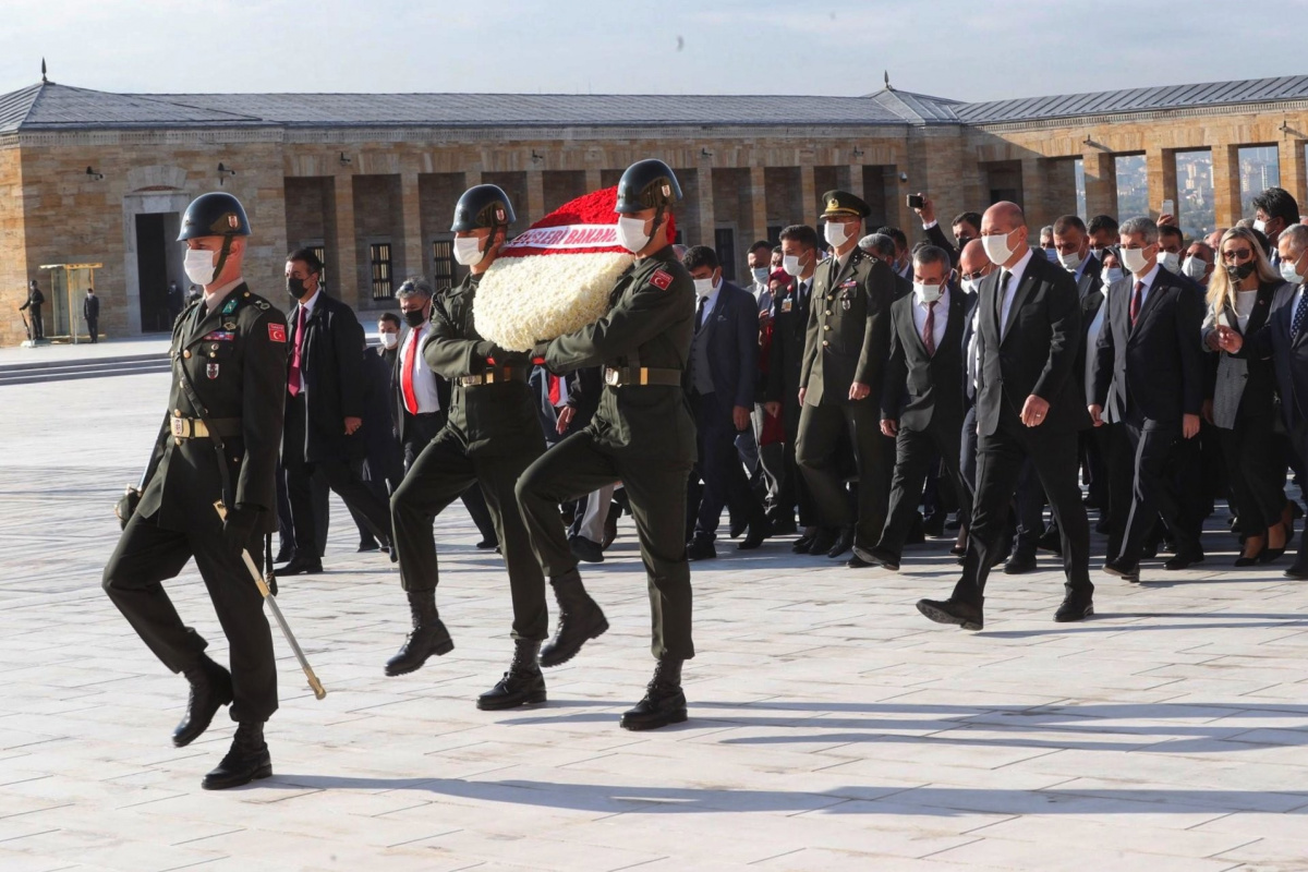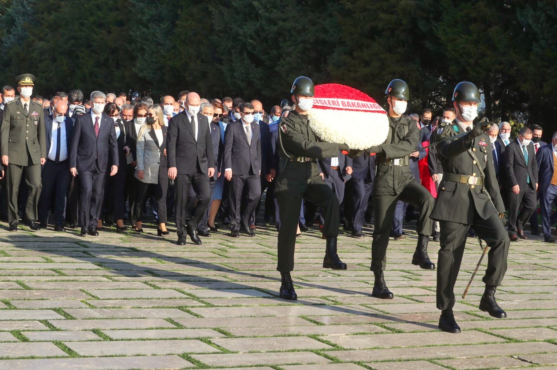 Bakan Soylu'nun mozoleye çelenk bırakmasının ardından saygı duruşunda bulunuldu, İstiklal Marşı okundu. Misak-ı Milli Kulesi'ne geçen Soylu, Anıtkabir Özel Defteri'ni imzalayarak şunları yazdı: