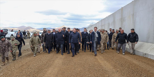Bakan Soylu, beraberindekilerle, helikopter ile Özalp, Çaldıran-İran sınırında inşa edilen güvenlik duvarı, hendek ve güvenlik yolunu, başarılı operasyonlarla terörden arındırılan Tendürek Dağı bölgesini inceledi.