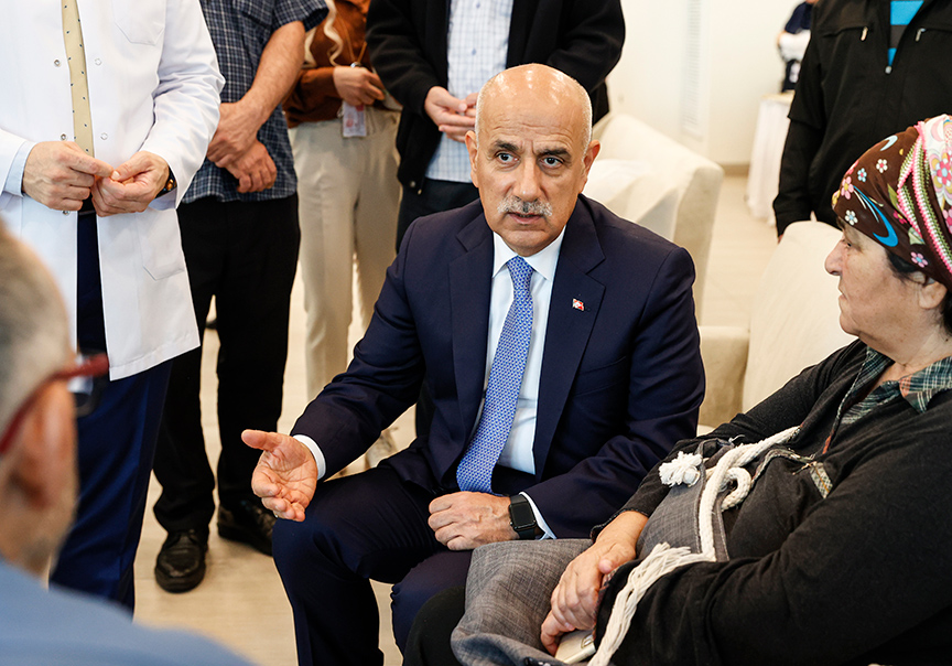 Tarım ve Orman Bakanı Vahit Kirişci, Çam ve Sakura Şehir Hastanesi'nde, Amasra'daki maden patlamasında yaralanan ve yoğun bakımdan servise çıkarılan maden işçisi İbrahim Çeliktaş'ı ziyaret etti.