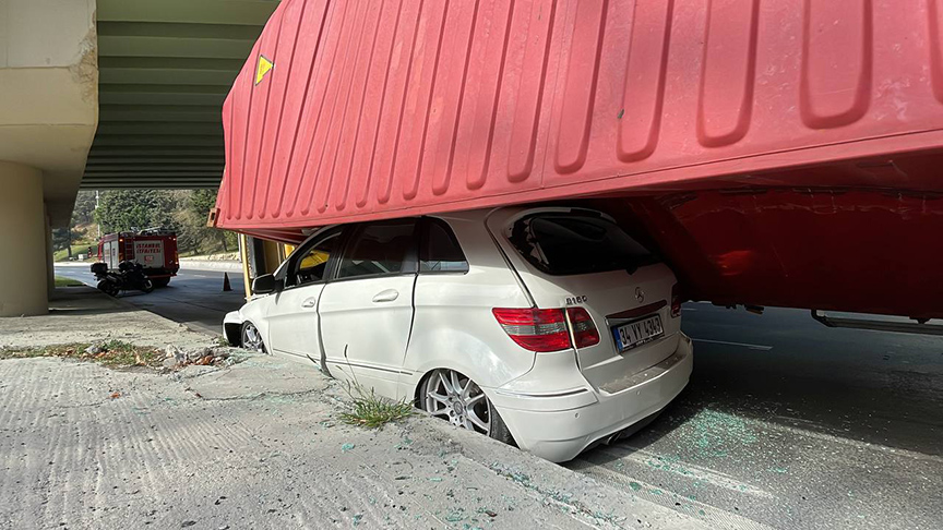 Çarpmanın etkisiyle dengesini kaybeden tır, yanında aynı istikamette seyir halindeki S.S.D'nin kullandığı 34 VY 4343 plakalı otomobilin üzerine devrildi.